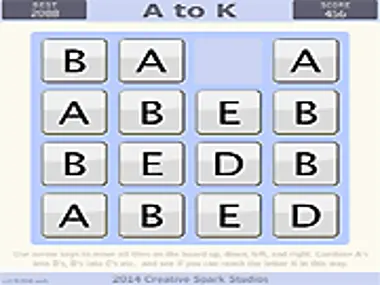 似た文字同士が出会うと、アルファベットの次の文字に合体します。AをBに、BをCに、というように変えていき、この方法でKの文字に到達できるか見てみましょう!