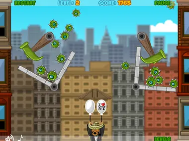 Amigo Pancho 2 は、陽気なキャラクターのパンチョが賑やかなニューヨークの街を旅するのを手助けする、魅力的なフラッシュゲームです。たった2つの風船を手に、プレイヤーは問題解決スキルを駆使して、パンチョの旅を脅かす障害物を取り除かなければなりません。風船を割ってしまう可能性のある鋭利な物を避けたり、危険を乗り越えるためにファンを使って上昇したりと、各レベルではユニークな挑戦が用意されており、パンチョが空を安全に通過するためには、迅速な思考と戦略が求められます。🎈🌆