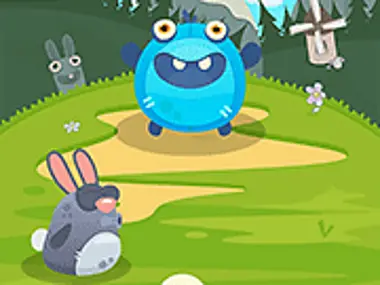 Feed the blue monster. Be careful - there's a nasty bunny that tries to get in your way!