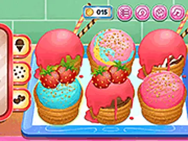 この美味しいデザートで暑さを吹き飛ばそう!指示に従ってチュロスを作りましょう。まず材料をすべて集めたら、チュロスを作る準備は万端です。それが終わったら、各チュロスにトッピングするアイスクリームを選びましょう。購入できるプレミアムアイスクリームやトッピングもありますよ。