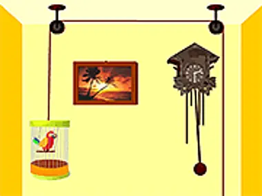 The goal of the competition was to create a small puzzle in just a month of time. Bart Bonte came up with a one screen puzzle featuring the notoriously squeaking parrot from 𝐓𝐡𝐞 𝐁𝐨𝐧𝐭𝐞 𝐑𝐨𝐨𝐦 𝟐 and a cuckoo clock and the obvious task to give the bird back its freedom. Squeak!