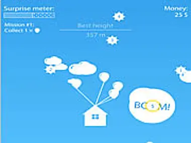 Your house can fly. The more balloons you collect, the higher you can fly. When you have at least one balloon, you can move your house. Avoid bombs, they can blow up your balloons. You can drag and throw bombs. Complete missions to earn extra points.