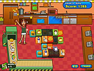 Prepare all the orders from the conveyor belt in time by finding 2 tiles of the same kind.