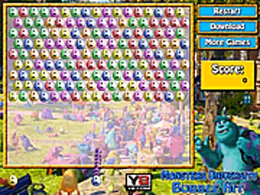 このクラシックなバブルゲームで楽しもう!サリーが、3つ以上の同じ色のマイクの頭をグループにして破壊し、ポイントを獲得するのを手伝ってあげましょう。