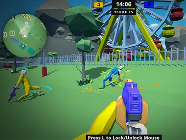 Paint Busters Onlineは、一人称視点のペイントボールシューティングゲームです。この楽しい3Dゲームは、マルチプレイヤーで友達とプレイすることも、ソロでクイックプレイをしたりサーバーを探したりして楽しむこともできます。3つの素晴らしいマップと、フリーフォーオール、チームデスマッチ、エリミネーションの3つのゲームモードから選択できます。腕に自信があるなら、すべての実績をアンロックしてリーダーボードのトップを目指しましょう!