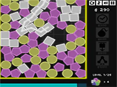 Collapse the shapes by mousing over groups. Remove enough or certain ones to progress.