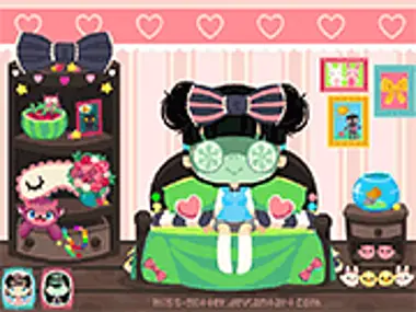 This little girl is going to pyjama party. Pick a dress for her by clicking her clothes and to change the hair style by clicking the hair.