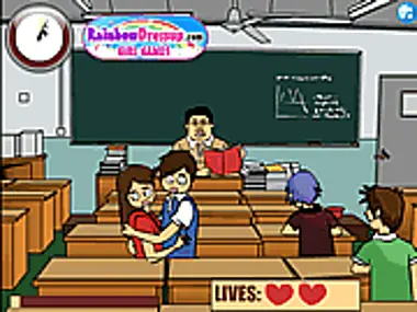 Help this student couple kiss each other in class without the cranky old teacher catching them!