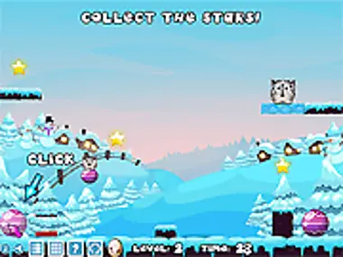 Remove platforms & drop snowballs on baddies. Game changes after first few levels of helping cats.