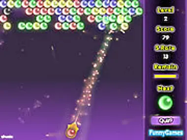 このバブルシューターゲームでは、同じ色のボールを互いに撃ち合うことで、各レベルをクリアしなければなりません。マウスボタンをクリックして押し続けると、ボールを撃った後に動かすことができます。